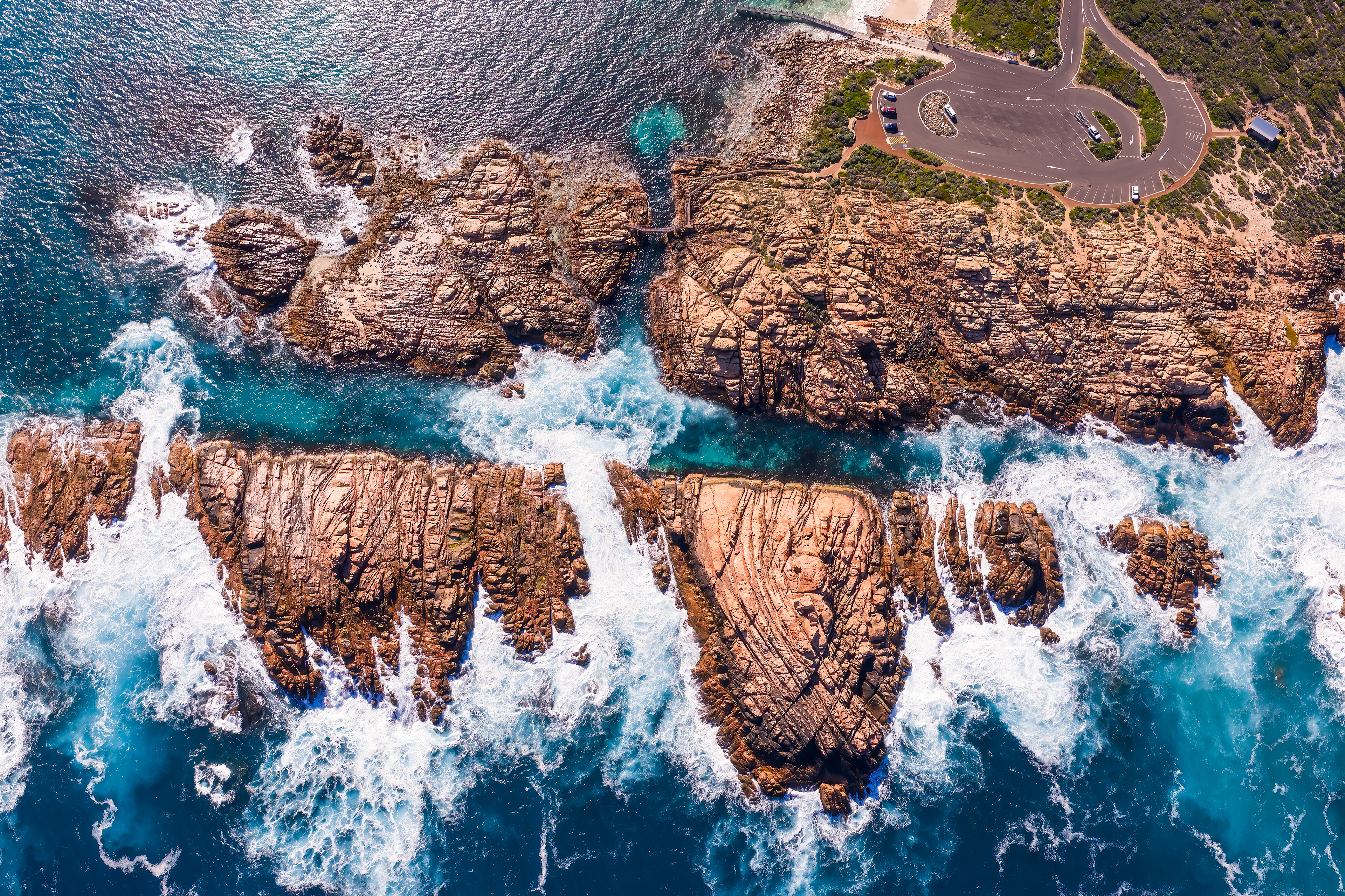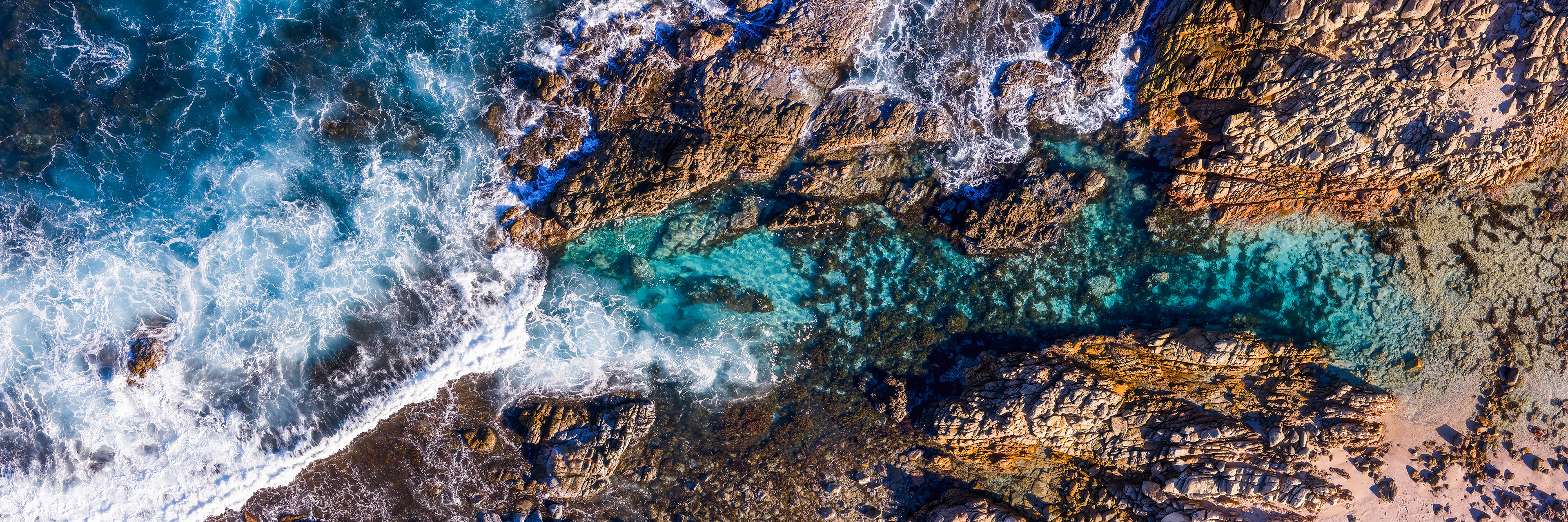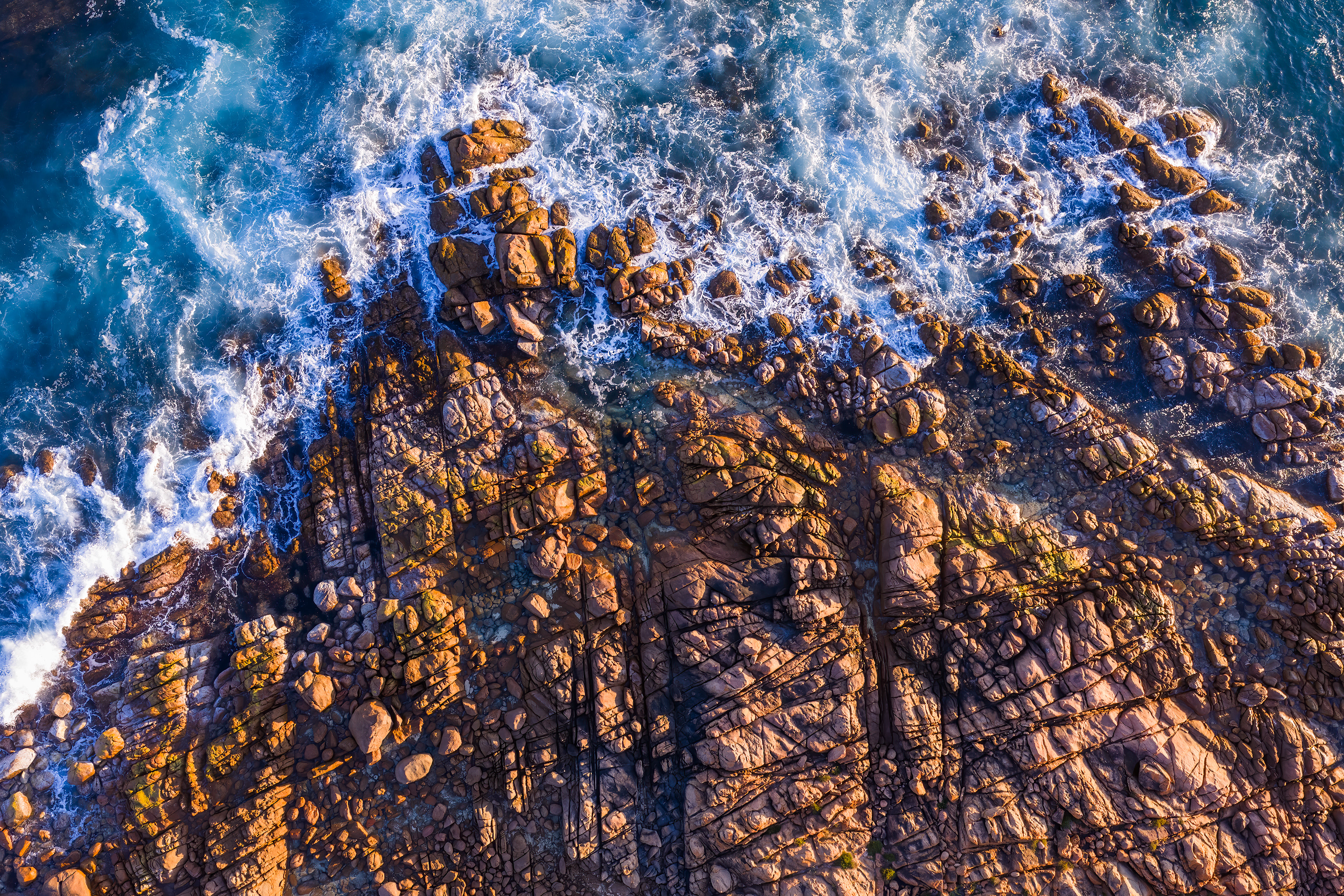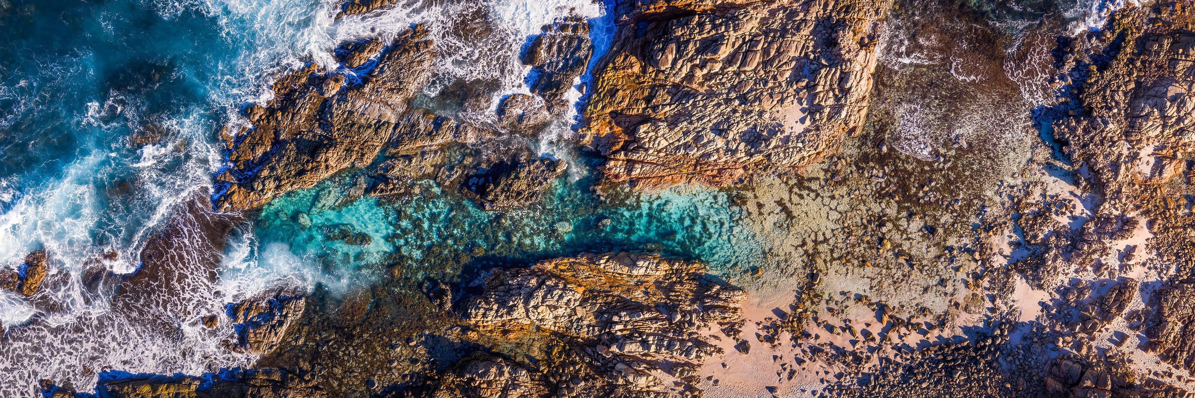 Taken with a DJI Mavic 4 Pro drone. Did not take any meaningful images of The Aquarium during our previous trip to the region in 2022. This time I was determined to explore the area more. So in the early hours just at sunrise, we hiked from the Smiths Beach area towards The Aquarium. On the way, we admired the wonderful views of the ocean together with wild flowers and great grand boulders, all worth the return journey too.