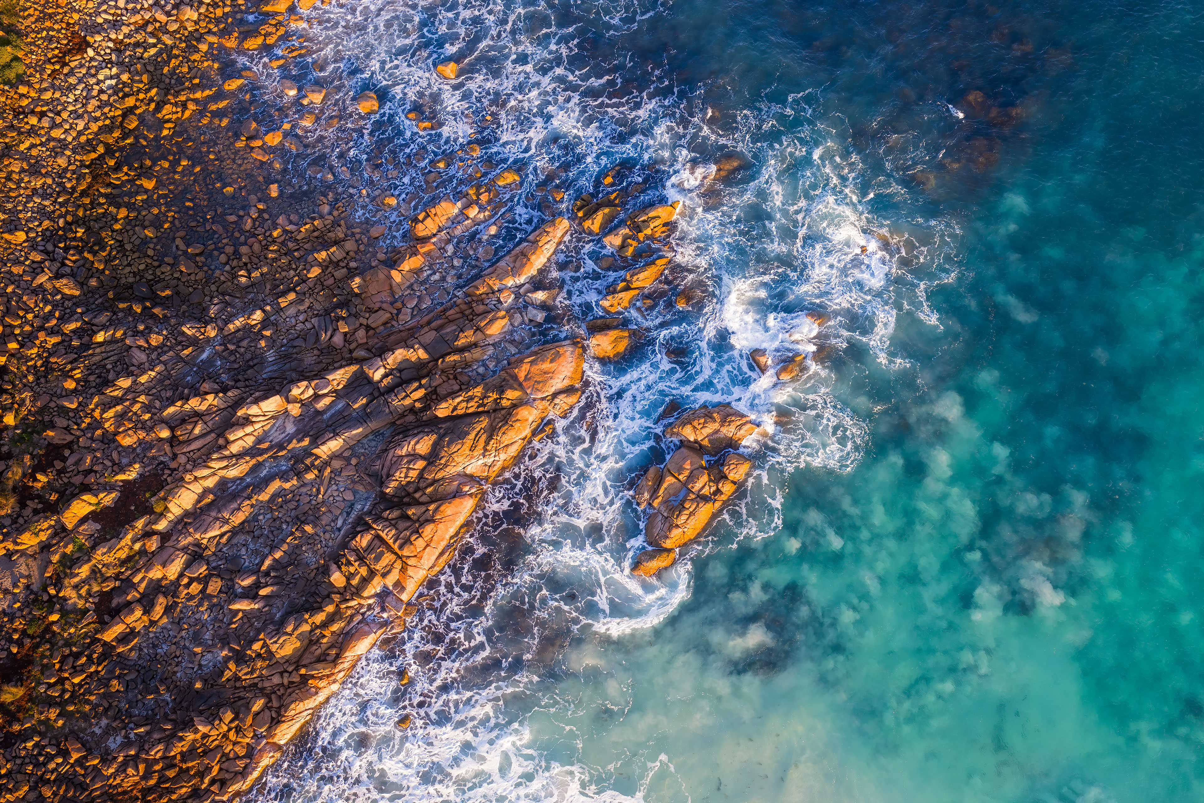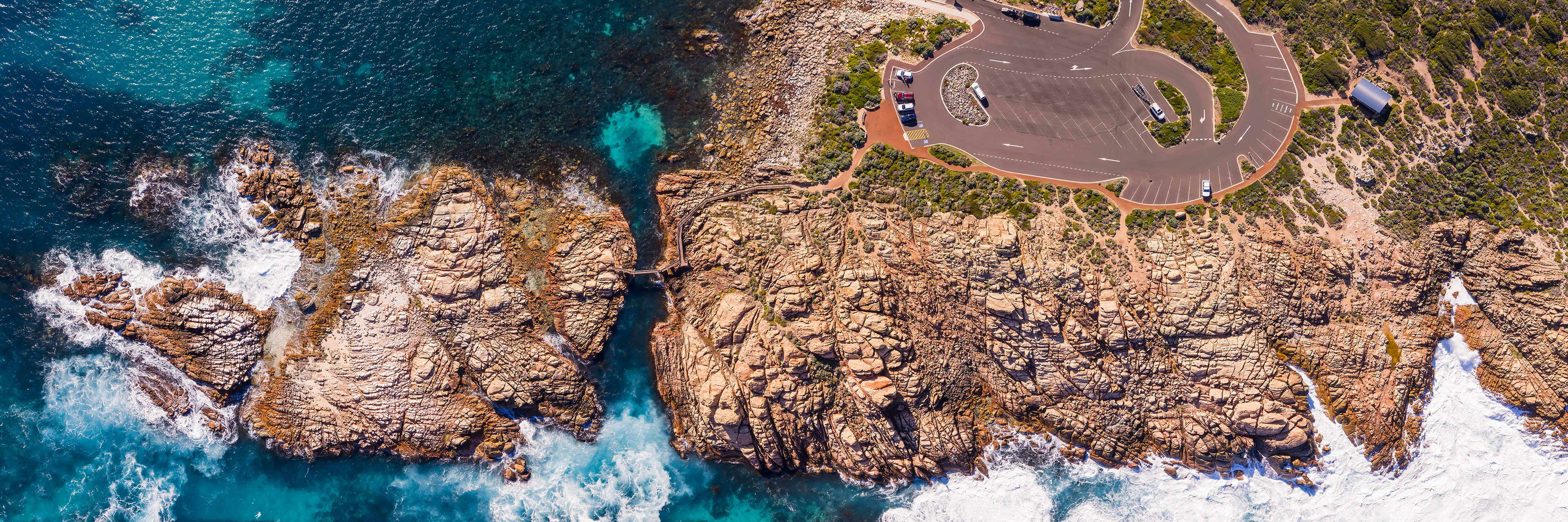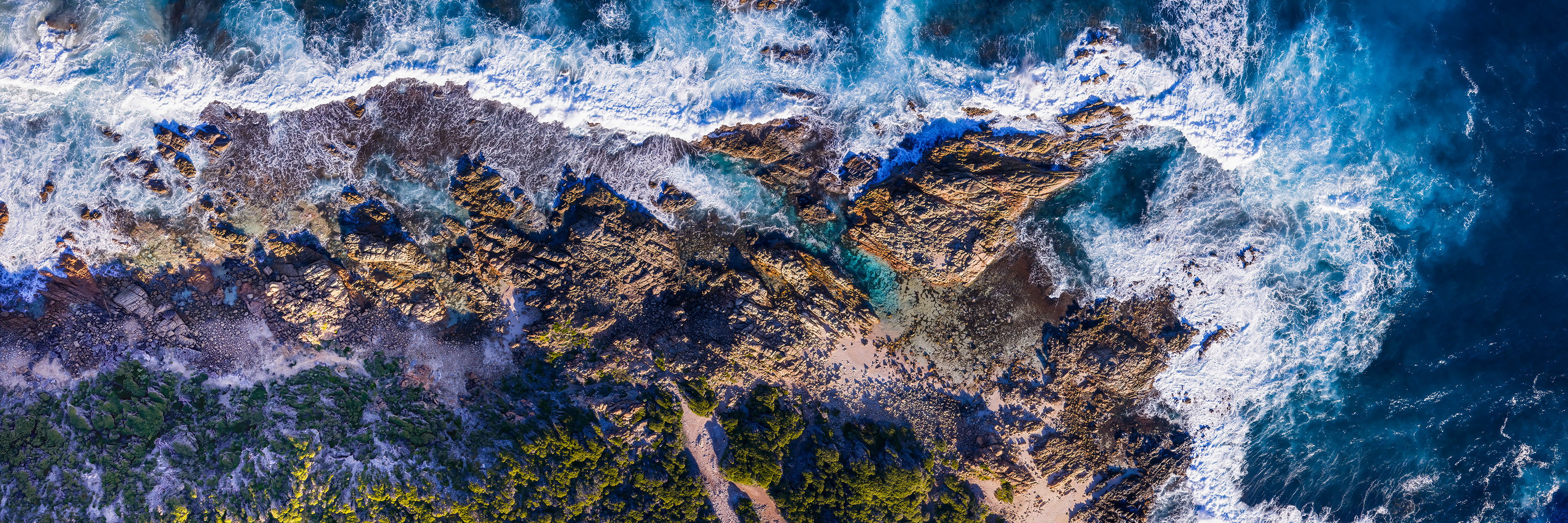 Taken with a DJI Mavic 4 Pro drone. Did not take any meaningful images of The Aquarium during our previous trip to the region in 2022. This time I was determined to explore the area more. So in the early hours just at sunrise, we hiked from the Smiths Beach area towards The Aquarium. On the way, we admired the wonderful views of the ocean together with wild flowers and great grand boulders, all worth the return journey too.