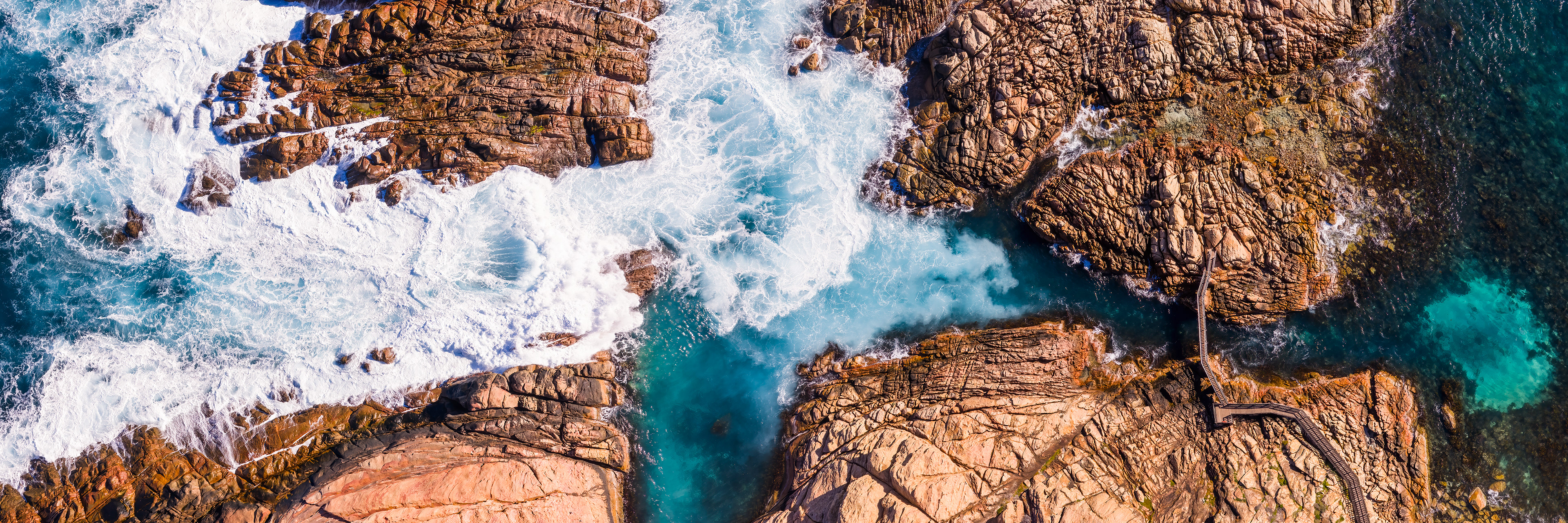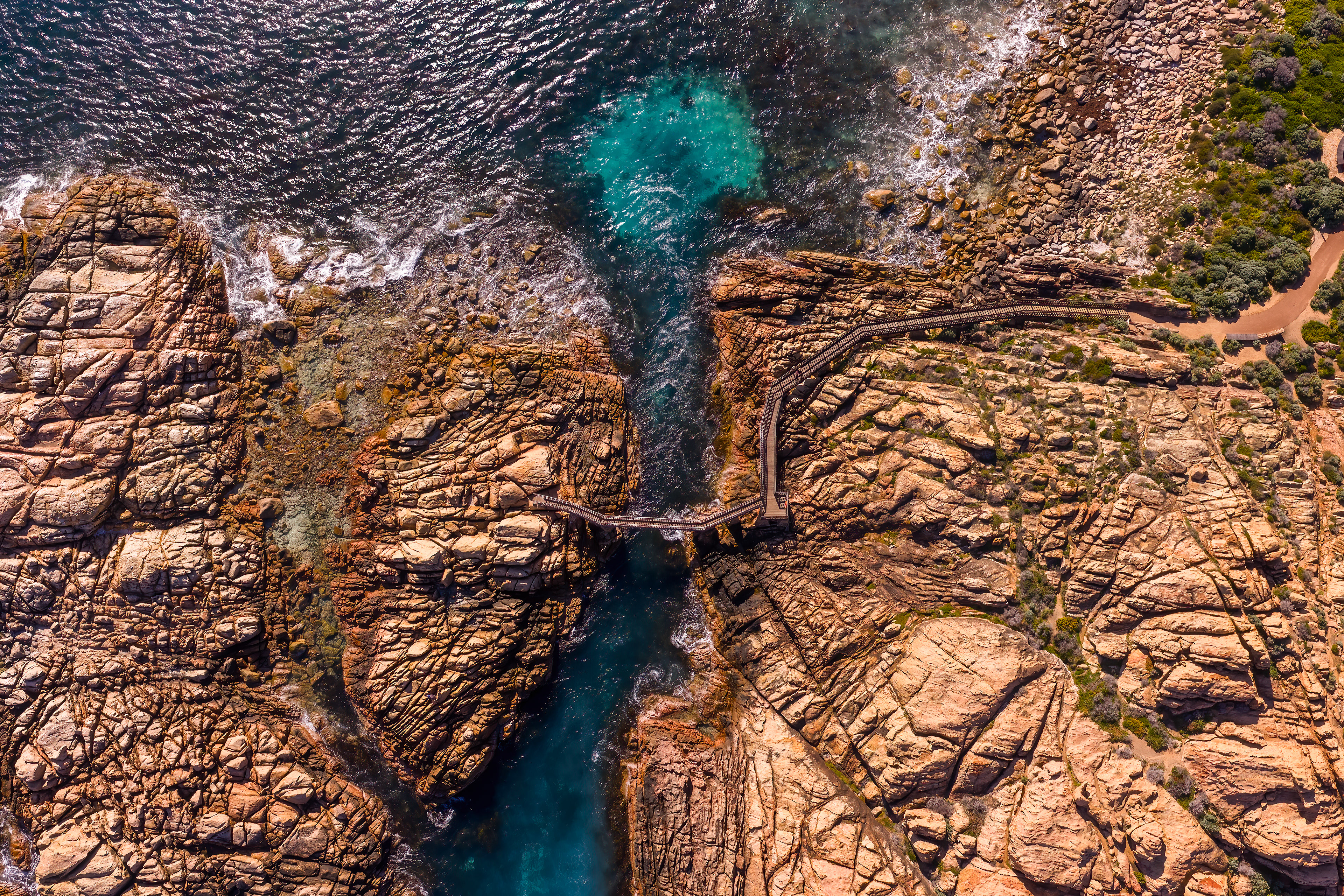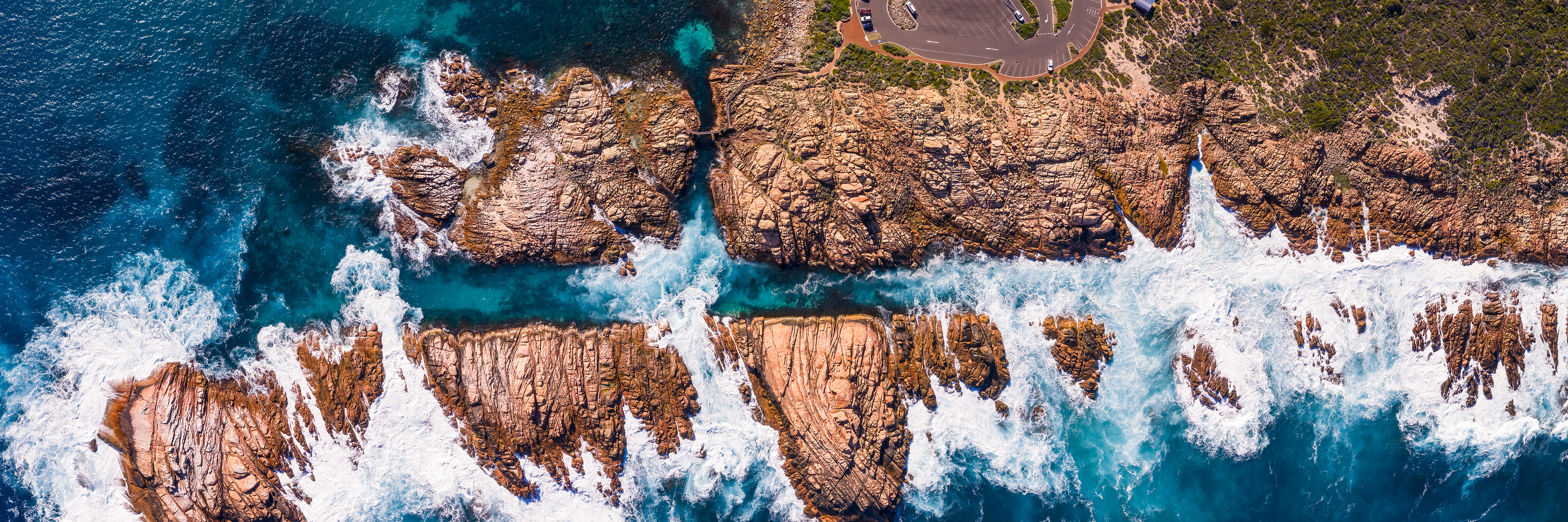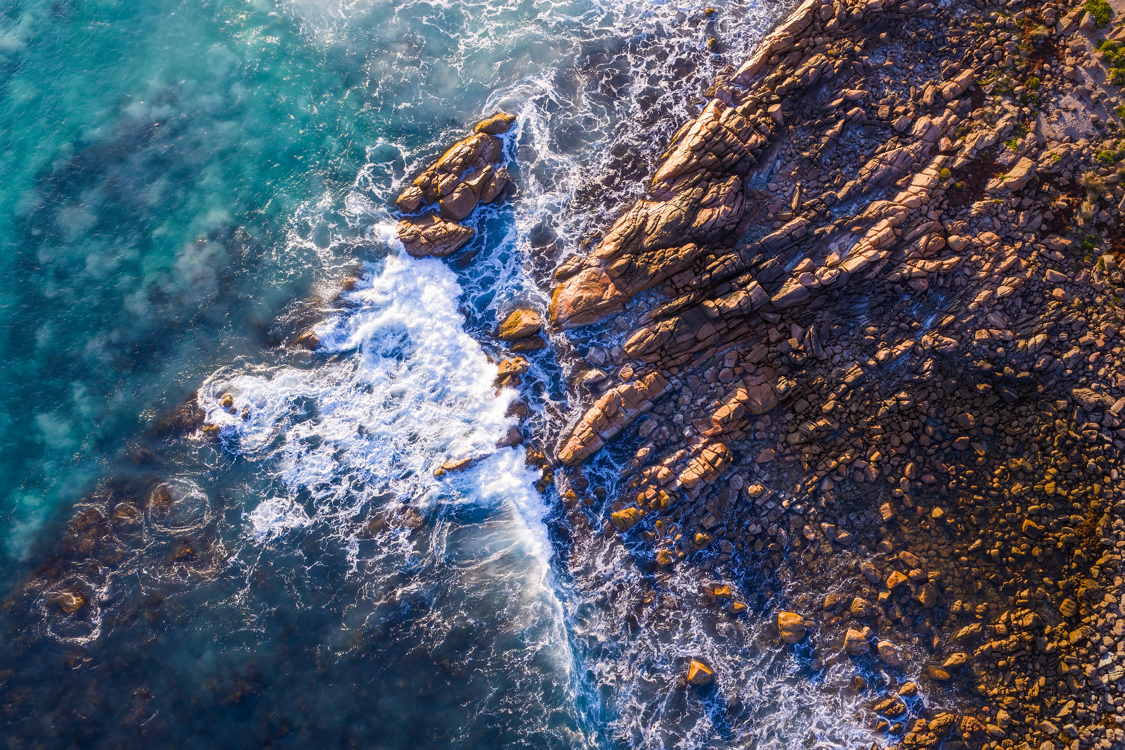 Taken with a DJI Mavic 4 Pro drone. Did not take any meaningful images of The Aquarium during our previous trip to the region in 2022. This time I was determined to explore the area more. So in the early hours just at sunrise, we hiked from the Smiths Beach area towards The Aquarium. On the way, we admired the wonderful views of the ocean together with wild flowers and great grand boulders, all worth the return journey too.